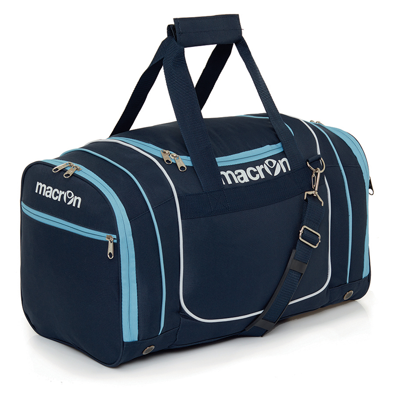 MacronMacron Connection sports holdall is made of high quality 600d polyester. The bag has a two-way zip on top, which gives access to the large and reinforced main pocket. This pocket is equipped with a small telephone compartment. The adjustable shoulder strap with soft padding guarantees easy carrying. The bag has two side end pockets with zips & an extra pock for keys etc. The Connection Bag is part of a series of three sizes.