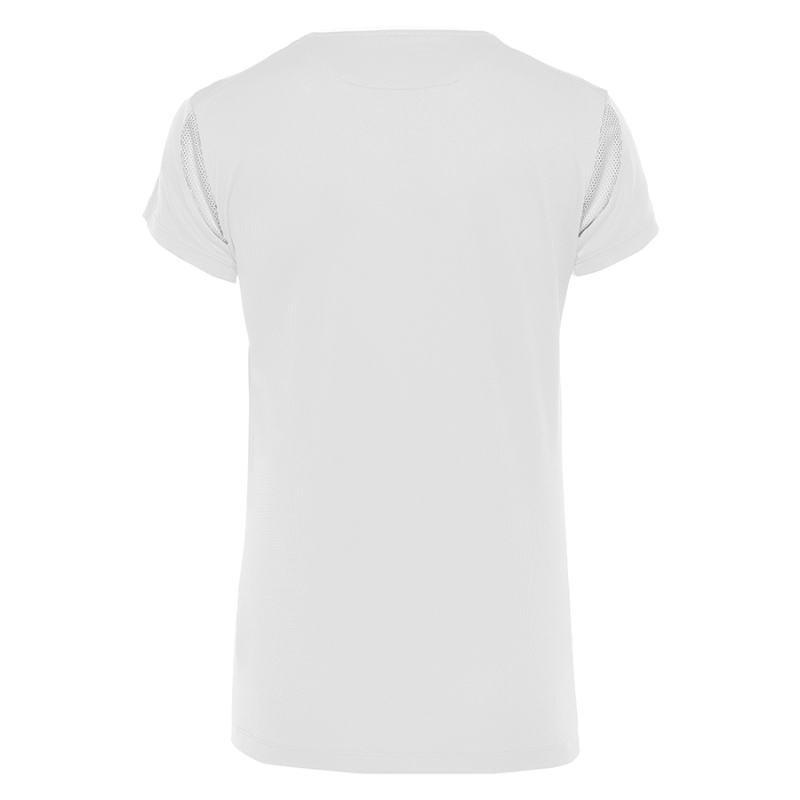 The Fluorine women’s volleyball t-shirt has been created with clean sleek lines. Despite its minimalist style, the t-shirt has been designed with great attention to detail: the inserts on the armholes give it a lovely two-tone effect hiding some thin bands in mesh fabric, a microfibre which facilitates perspiration while the V neck with half moon gives it an elegant, feminine and stylish look. This volleyball-shirt is available in a wide range of different colours.