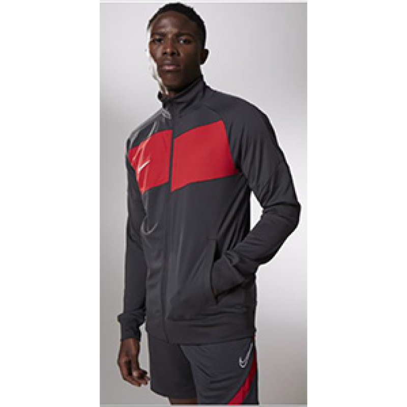The Nike Academy 20 Dri-FIT track Jacket has soft, sweat-wicking fabric to help keep you dry and comfortable on the field or on your way to the game. Breathable mesh panels across the chest help keep you cool. With 2 zippered side pockets securely store small items. Standard fit for a relaxed, easy feel.