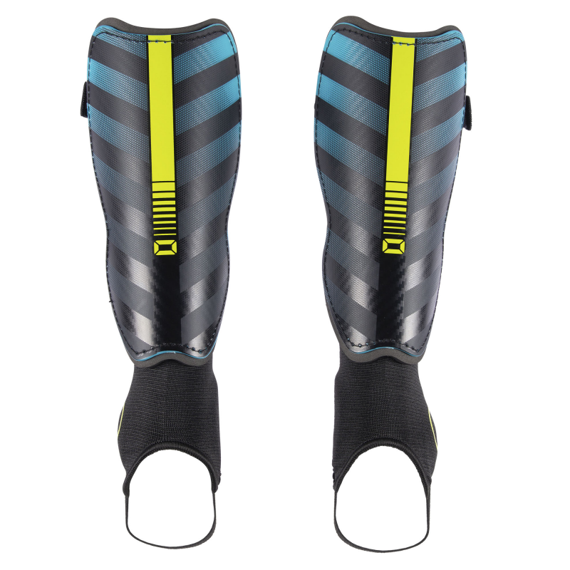 These shinguards have a hard scale for optimal protection. They include ankle protectors and have an anatomical, comfortable fit for the left and right leg. The hard cover reduces the impact of a shock. On the inside the shin guard is covered with soft foam, which helps to absorb the shock. The shinguard is secured with two velcro straps.