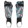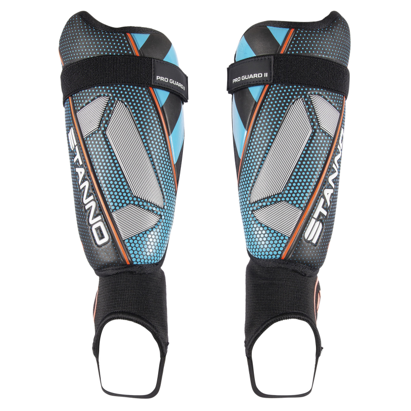 These shinguards have a hard scale for optimal protection. They include ankle protectors and have an anatomical, comfortable fit for the left and right leg. The hard cover reduces the impact of a shock optimally. The shinguard is secured with two velcro straps.